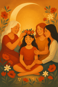 Le Cercle des Premières Lunes est un rituel sacré destiné à célébrer l’entrée d’une jeune fille dans sa puberté et sa première menstruation, appelée aussi « première lune ».